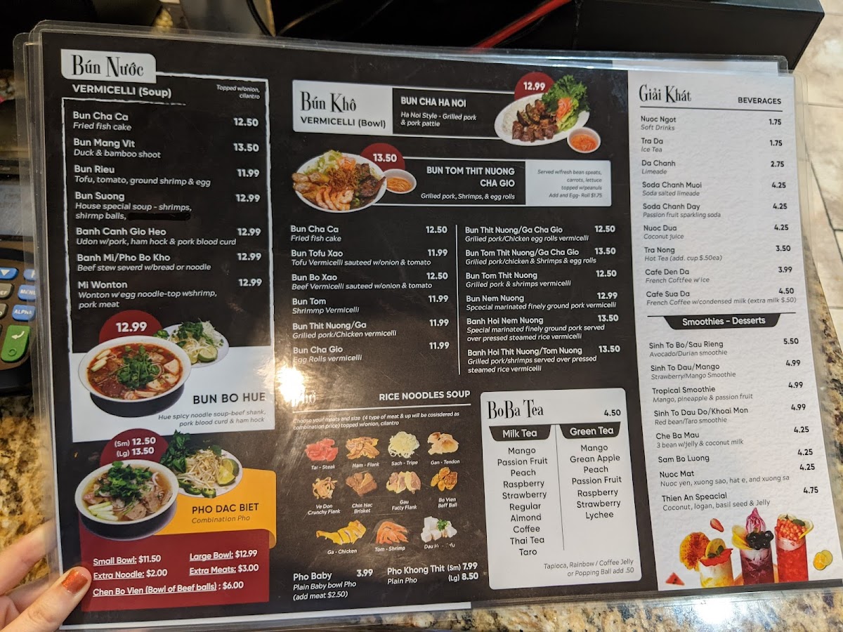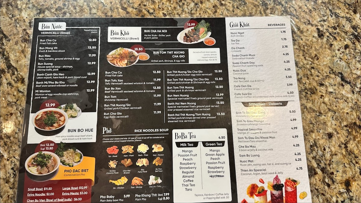 - Bun dishes, starting at $5.75, feature various flavors, including tofu and grilled pork.