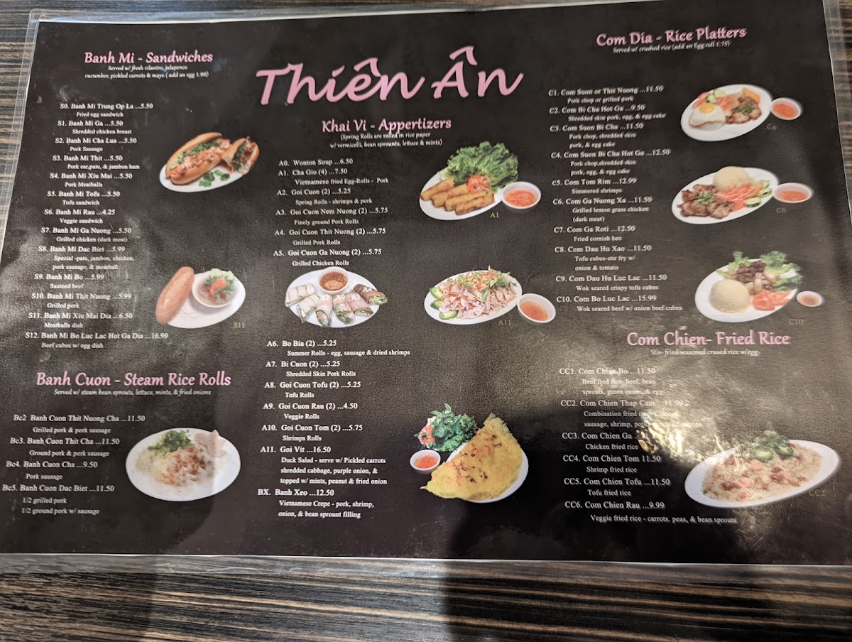 Thien An Sandwiches Menu